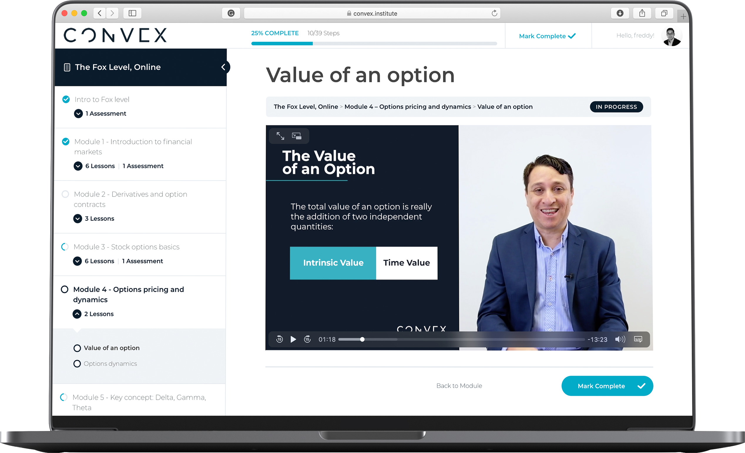 GammaWizard Inc. provides the Convex Options educational program. The program is designed to provide a detailed view of the world of Options with three different difficulty levels available. Sample lesson