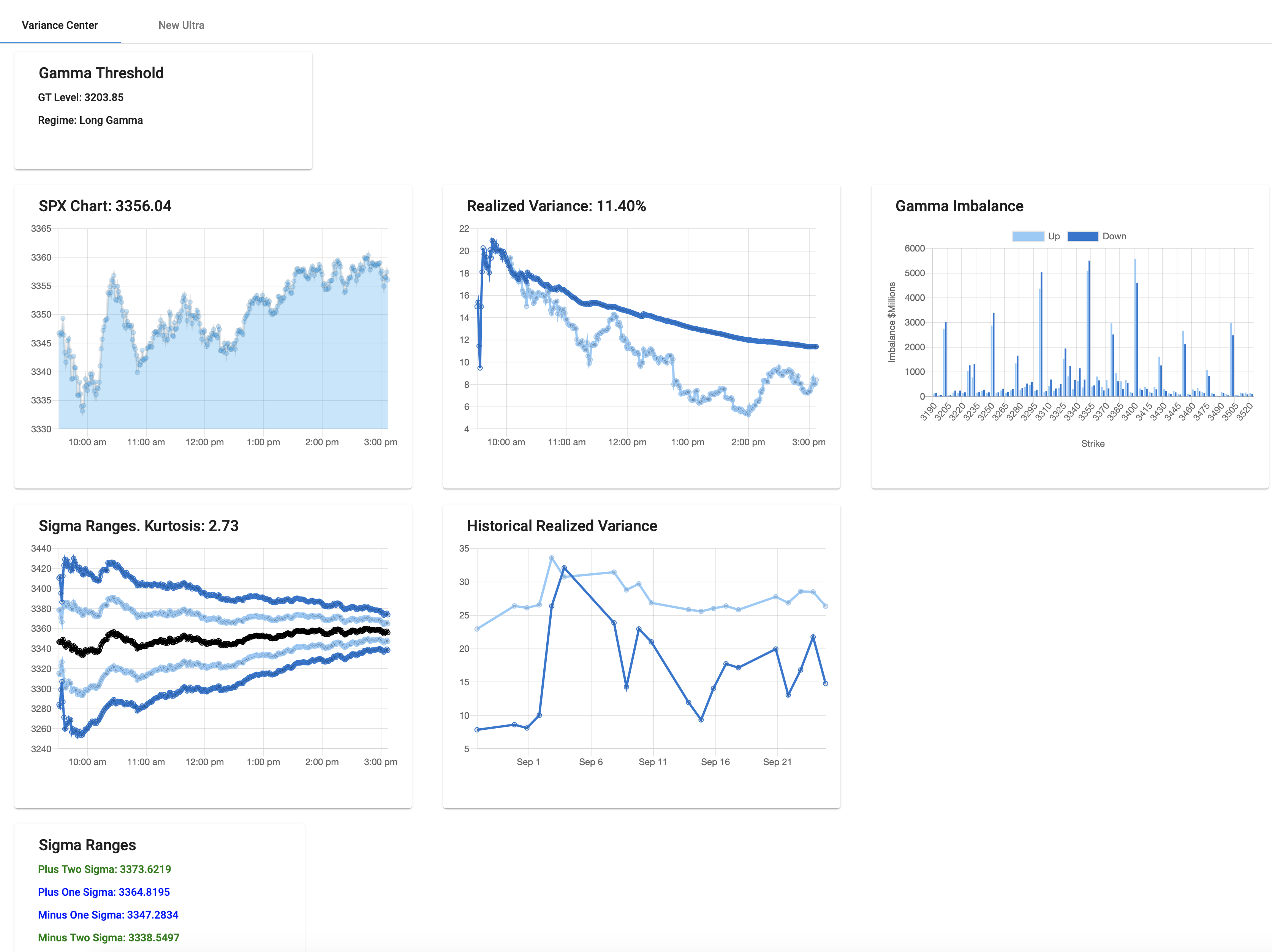 At GammaWizard you can access our comprehensive volatility tools like the Variance Center, Gamma Central, Trade Analyzer, and more. The tools provide analytics, simulation, and forecasting for professional options traders.